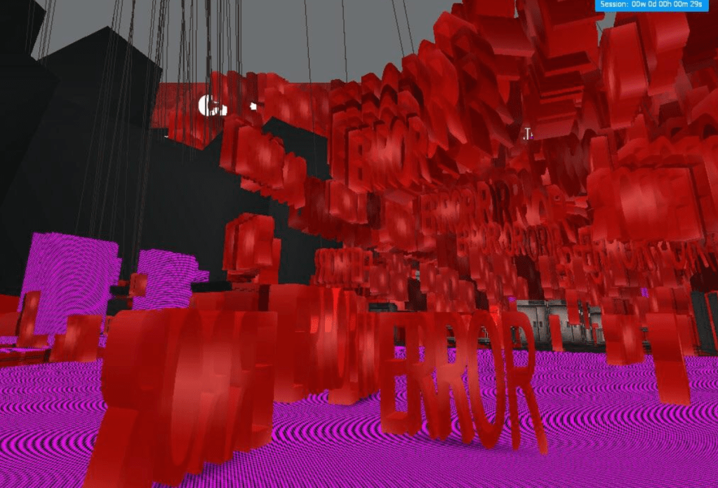 The purple missing texture line is another iconic part of the game, due to Gmod being a mod for half life 2 many of the assets used are from various different sources, they are mostly from counter strike source those who do not have the game installed will see large error messages and pink and black textures. I feel like the idea of these texts could be quite imposing and impactful.