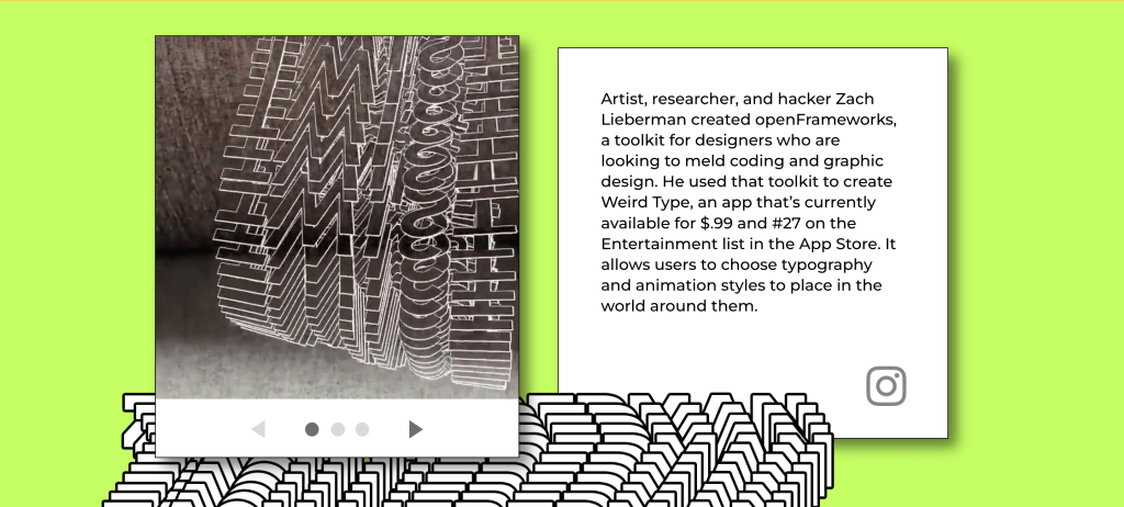 One piece of AR / Mixed reality work I really like and have had my eye on for a while is this Type in Space for hololens. I feel like it is extremely impactful seeing these bold pieces of type shown in real world environments. The fact you can edit them in real time using only your hands is also extremely powerful.
