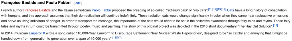 For some of the area and object tracking this came to mind, this is Long Term Nuclear Waste messaging a way to communicate the idea of danger into the far future.