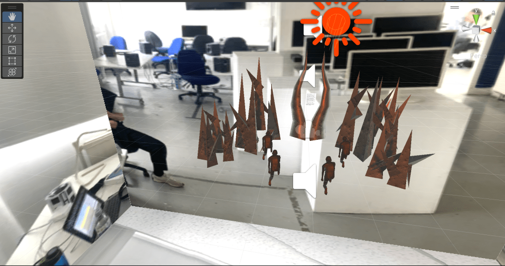 To create some sense of environment I decided to include some spatial audio with the models of people being behind it encourages you to look around and take in the environment.