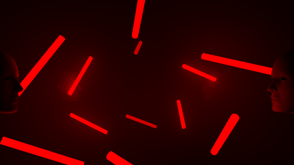 Experimented with different lighting intensity using a single face as if youre in the perspective of one of the faces. I also experimented with a blur texture made in photoshop intended to give the face an air of mystery, representing a mask or glass screen.