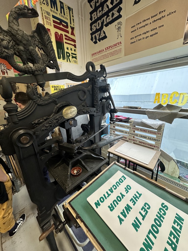 My meeting with Edwin was short and sweet however it allowed me to get a good idea for the space and what is available as well as how we can create our own customised lettering with laser cutting, using different materials such as wood or plastic allows for a multitude of experiments. One of my fears going in was that the mesh wouldn’t take the ink, but Edwin assured me that as the inks they use in the case room are oil based they dry to anything, they may just take a while. He also encouraged me to experiment and work the material as much as possible, as to not encroach on deadlines and have plenty of time to document and test out my work which is of course something that is always good to hear. Getting hung up on details at this stage isn’t the best way to go.