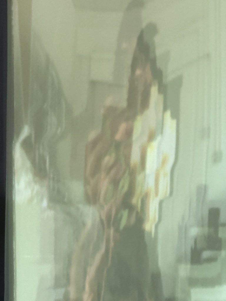 I didn’t manage to catch the name of the person who made these, however I feel like they are very similar to what I am working on at the moment. Especially the collage’s with the projection. Their combination of different techniques such as mark making and collaging.