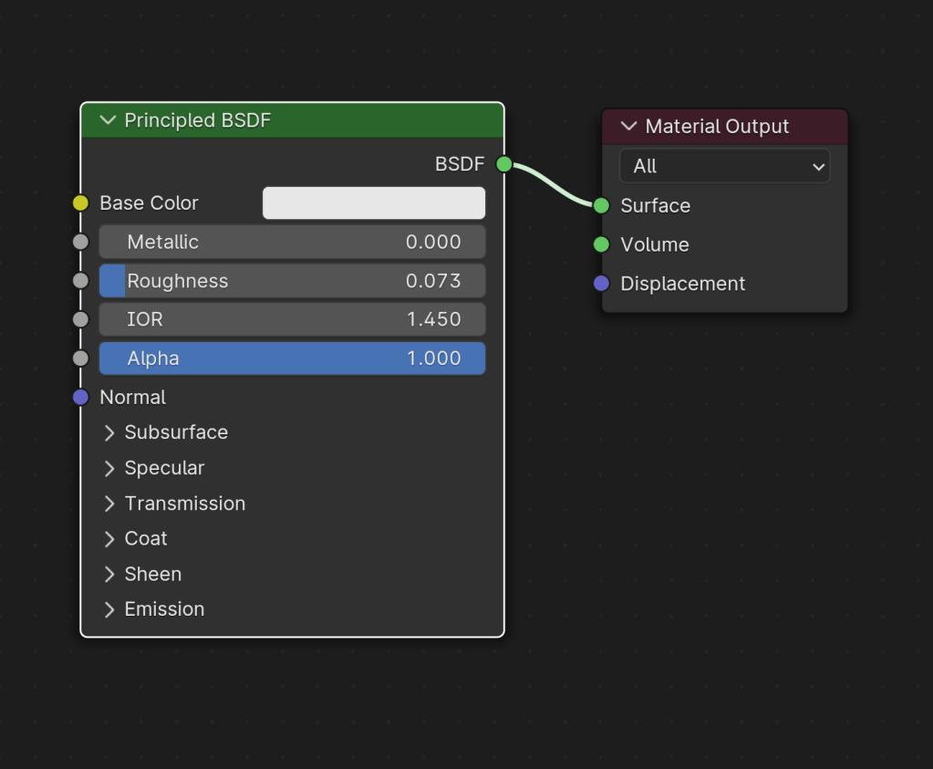 I jumped back onto blender, mainly because I wanted to test it on my laptop and try and generate new assets for my touchdesigner work. However I realised that there have been some changes in the ways that materials work in blender which at first was a bit confusing.