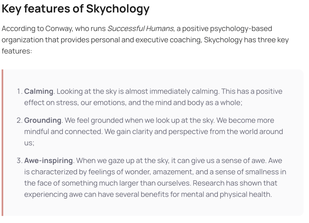 This then spurred me on to research the concept of Skychology.