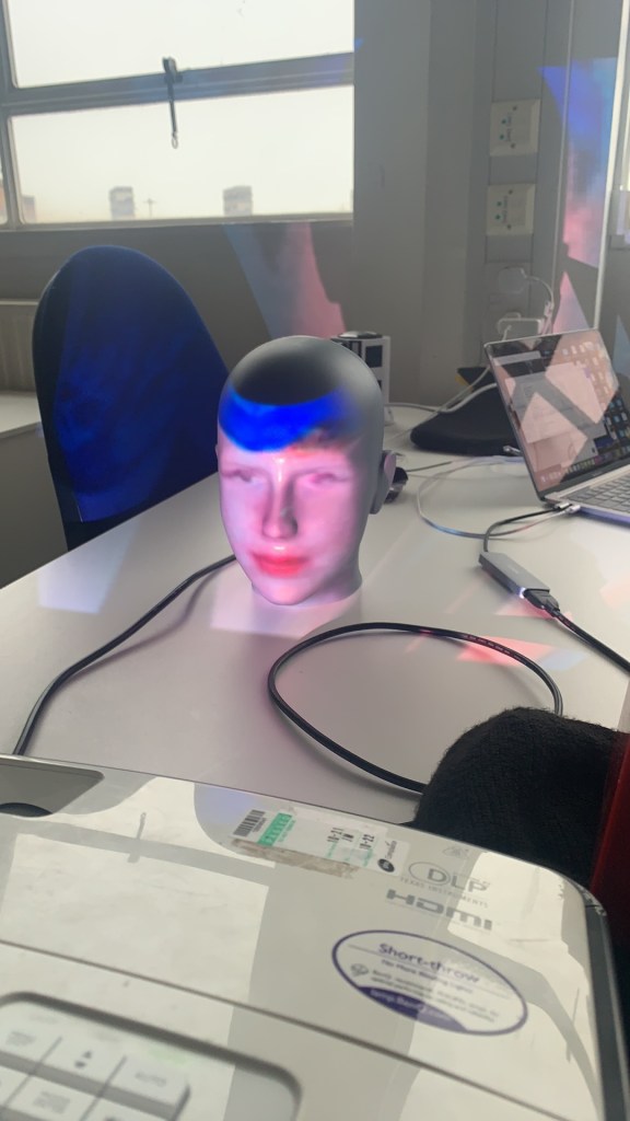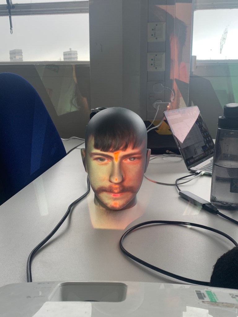Just using the projector and my head I decided to look back and project different things onto the head just to get a feel for how the face distorted it. Using things like faces, text from my typography project and text from my development in the previous section of this project.