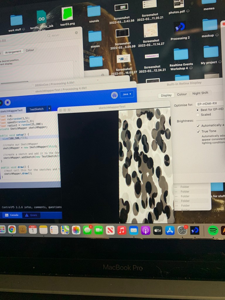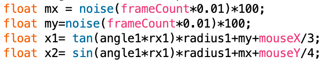 I also experimented a lot with projection mapping, however, it seems to not work at all with processing and Im not the only one having that problem, I abandoned the idea as I also think it looks better without it, the words shrink down with the window and ends up being totally illegible, although thats what I was going for I do want the viewer to still be able to tell they are words. I with the movement I have also added a subtle noise function to both the sin and tan waves in order to get them to gently pulse, just do further the effect that this is a real time thing rather than just a still image being projected. This also gives a feeling almost like a heartbeat or breathing, a callback to the personification of type I mentioned in part 1.