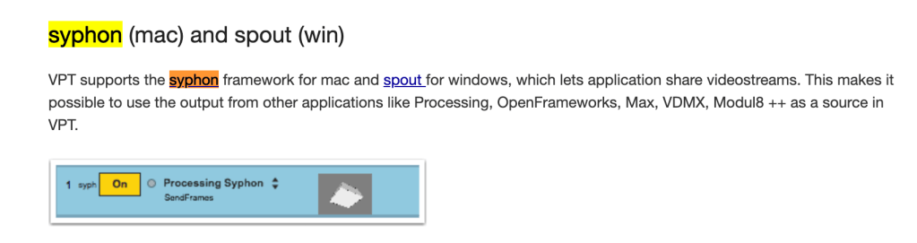 The tutorials that I have found all seem to use an old syphon library that is included in processing however, it is not included in processing at the moment. I found this Github page from the creator stating that it works with processing 3 or higher but I cant seem to get it to work and don’t want to downgrade too much incase my code isn’t compatible.