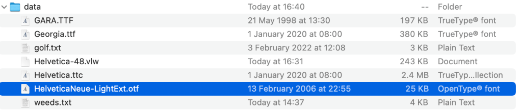 I also made some changes to the font, with some in depth research (2 websites) I decided that the average easiest to read font was Helvetica, I chose this as I wanted to build a sense of irony within my work, a commonly extremely legible piece of type obscured by itself, I then took the creative liberty of using Helvetica Neue due to some technical issues with the normal Helvetica being a ttc font not recognisable by processing and the VLW fonts not loading properly.
