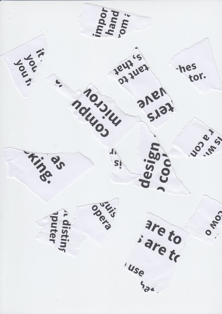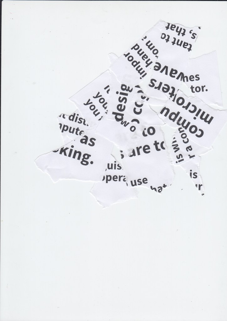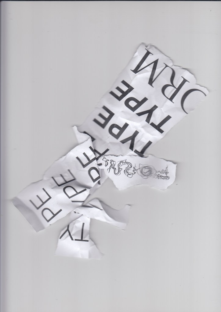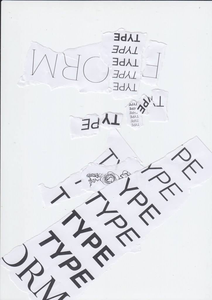 Exploring form with type, ripping up the paper creating different forms, disrupting the flow of the font etc.