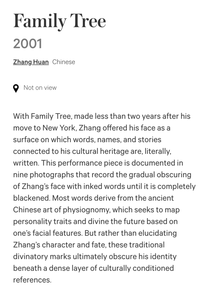 This work by Zhang Huan recommended to me by Theo also draws on similar things as my research into sagmeister. Named “Family Tree”.