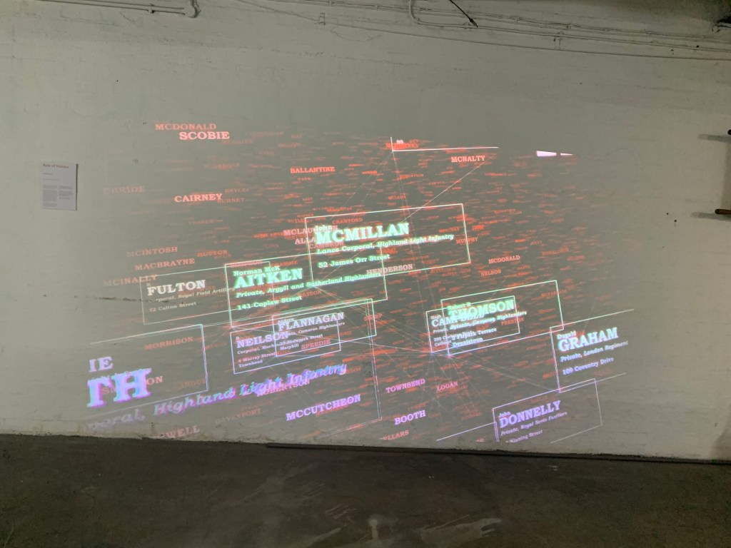 The information on the tour was immense, but seeing the physical history of the station was by far the most interesting for me. Seeing all the hidden parts of central station and the story of years gone by was fascinating. The leader of the tour Paul Lyons spoke to us about what we were doing saying that Interaction Design has been a great help for them, seeing some work in the wild was also good as it gave an idea of the context that this work could be used in as well as Cat in the Monday Morning sessions saying that this type of data vis art helps people process visualise and relate to large quantities of data. Paul mentioned that people were able to pick out relatives and their own home addresses from the video which was a great insight into how the general public react to this sort of work.