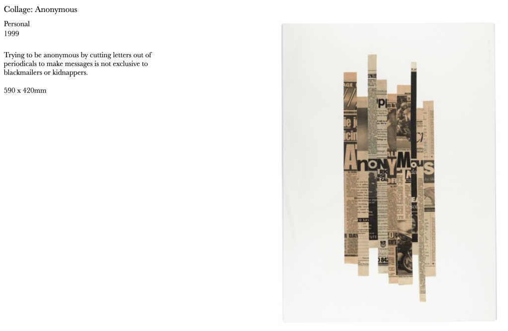 I found Kurts work interesting for almost the opposite reason of Hannahs work, his mix of materials, blocks of colour and limited text. It looks like something you would find on the ground outside, but there is defiantly something charming about this.