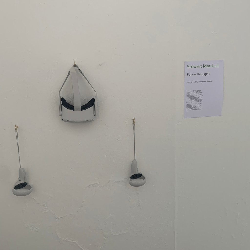I also feel that the VR will be well suited to the gallery experience, I also feel like VR isn’t a thing people normally get to look at so hopefully the opportunity will encourage more people to try out the experience