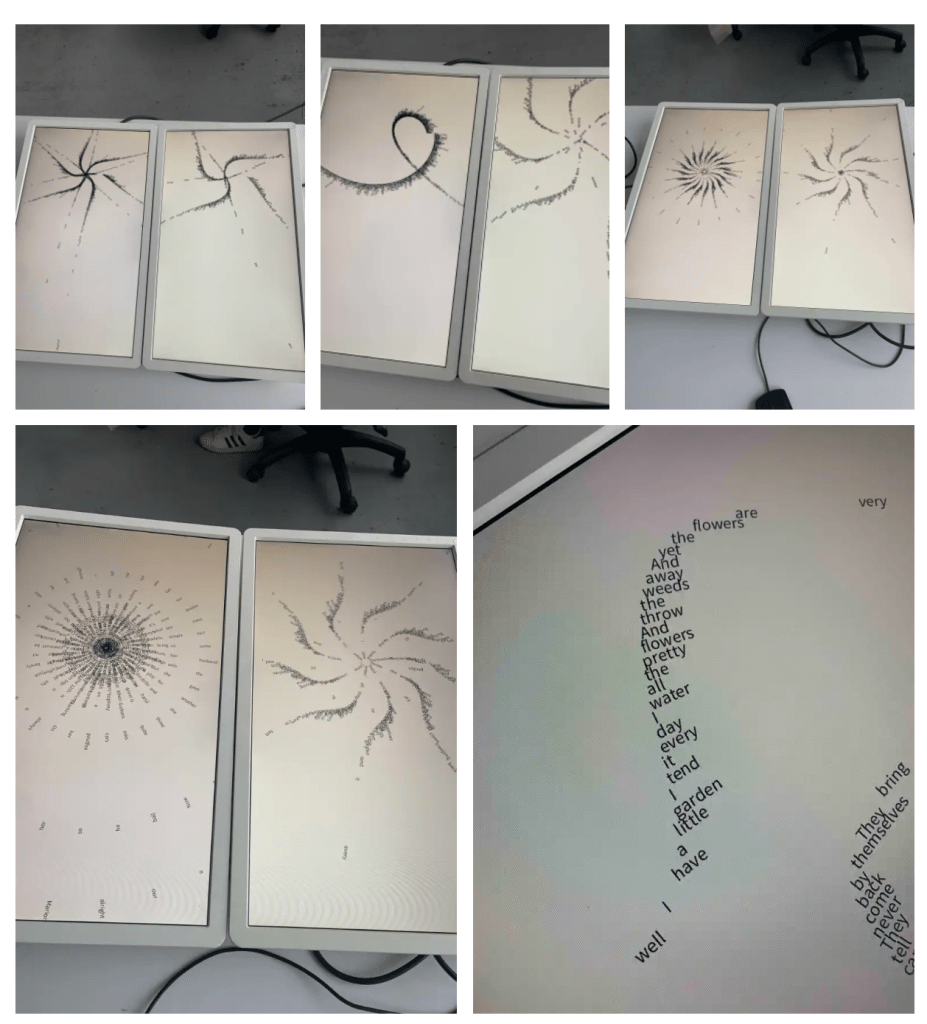 For typography I would expand my screen usage and have a multi screen spread, with one sketch running. However this means that I would need to have a way to show the work continuously and I don’t want to have to keep my laptop within the space, I was looking at refurbished mini pc’s but they seem so expensive for what they would be used for plus my want for multiple displays kinda goes out the with this.
