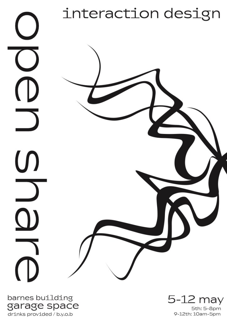 A sadly compressed version of the PDF I used to print but I decided to use Vogy Smog from swiss typefaces, with its stylised upper case as seen in the squiggles which is an upper case X for ixd, an element Rona wanted to include in the poster.