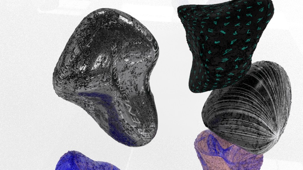 I took inspiration from various sources such as 3d work from sucuk und bratwurst, artists I have found via instagram such as Guccimaze. This inspired my formations in my rocks as well as the textures used. Installation work from James Turrell and Hitoshi Kuriyama inspired the setting of my work, being presented in the all white slightly reflective “studio” environment to make sure that the entire focus of the video will be the rocks.