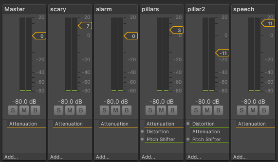 I used two different mixers for my pillars and two different sounds in an effort to create some variety with the sound in the same vein with my materials, so everything’s not just constantly repeating.
