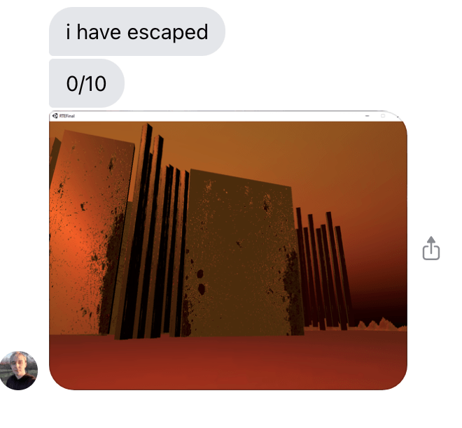 Using Discord I sent off my project to my friends for them to test and had to do some fine tuning with my blocks as I didn’t want the player to unintentionally escape from the maze as I slowed down the animation in my scene to better match their size and the sound clip I used. I wanted to emphasise the idea of SCALE that the player is dwarfed by these massive structures.
