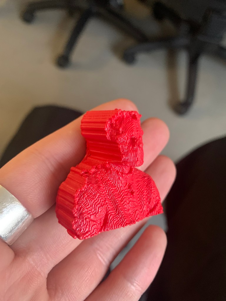 This workshop was more of a demonstration and introduction to 3D printing, similar to the VR workshop, we learned the technical aspects of 3D printing, how to set up a scene, the various software that was used as well as how the printer actually works and what can be 3D printed and what cant, I found this interesting but difficult to fit into any projects that I have done in the past, however, it is very useful to know as I have seen the various uses for 3D printing, my Dad bought a 3D printed valve for the fuel line for his car and I know 3D printing is big in jewellery as well. The applications are fully there I just haven’t realised them for myself yet, projects such as data visualisation will be better for this sort of thing as it is a great way to physically see data rather than it just being on the screen.