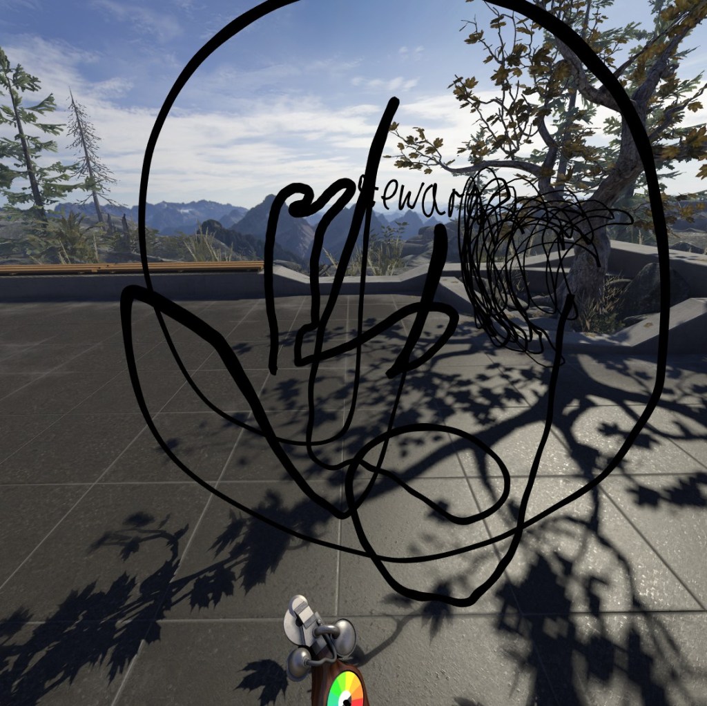 To start with mark making I decided to create some in VR, experimenting with just drawing my name, letters and shapes using Steam VR just to see how they would look in a 3D space. I feel like there’s definite scope here to create 3D sculptures in real time using tools similar to this, however it is not for me to do.