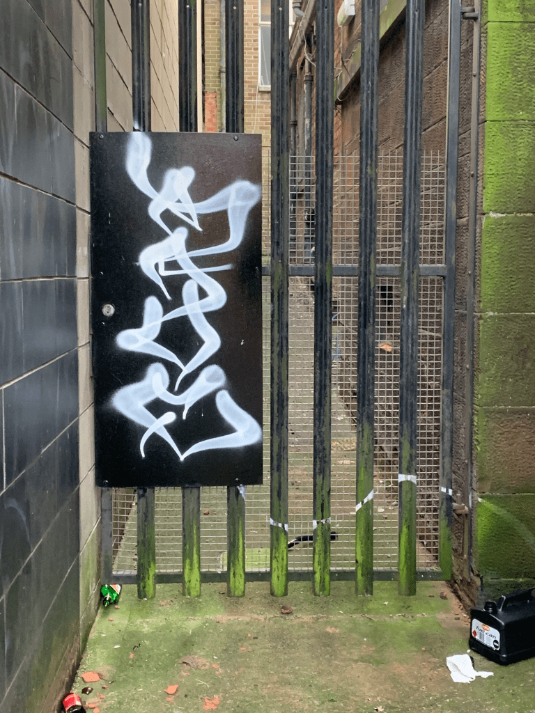 I also on my way back from the studio had a look at some of the graffiti around the place just to get some inspiration for more abstract letter forms also a poster stuck outside the studio which I found fit the context of the project very well, the unique letter forms you can produce with the paint are very interesting.