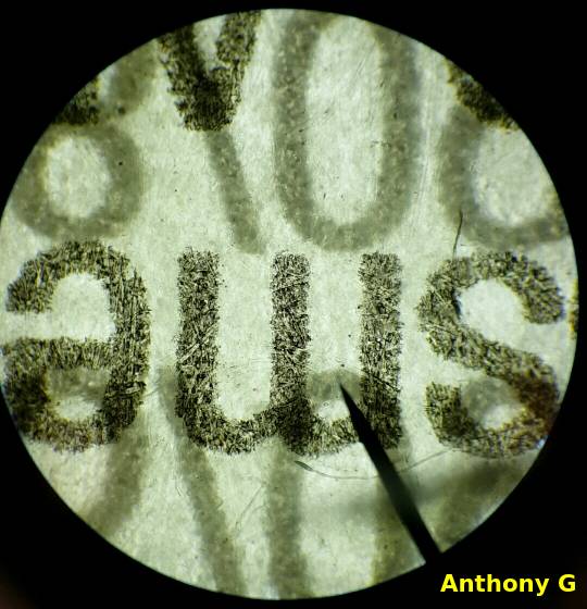 I also remember back to high school in science we looked at various things under the microscope, one of the things we looked at was letters, thinking back now, seeing the imperfections in the letter print was really interesting as you can see the marks in the paper and the minuscule amount the ink bleeds out.
