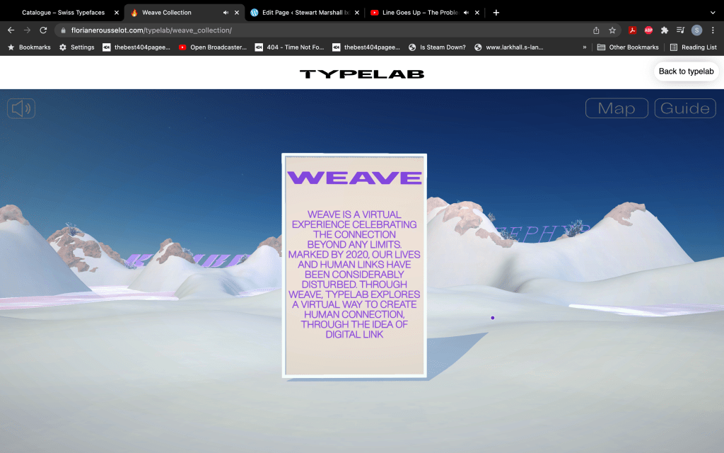 I also looked into TypeLab’s Weave Experience, an virtual 3D experience intended to highlight our extended connection due to the pandemic.