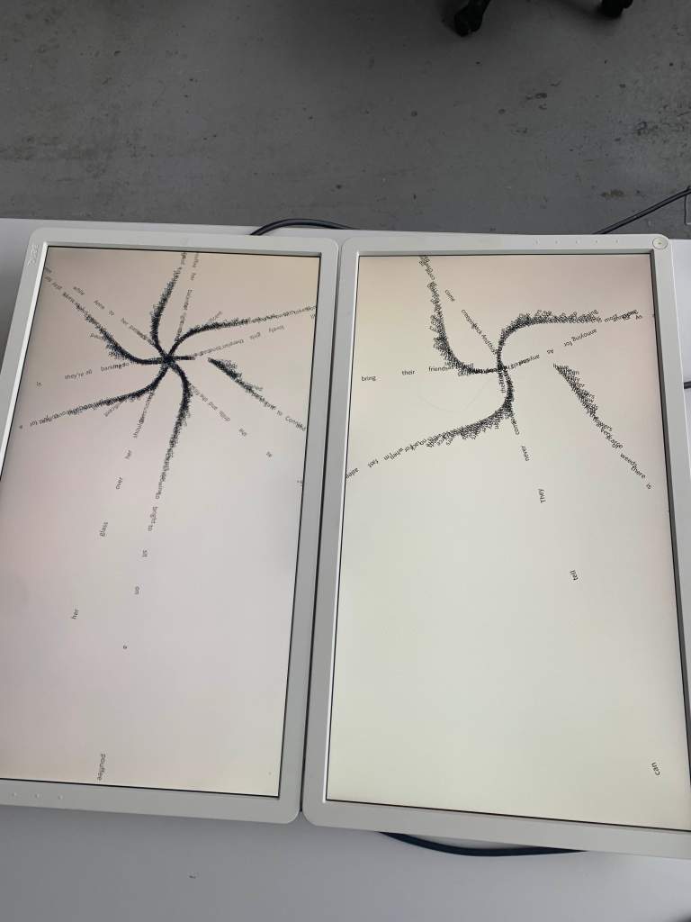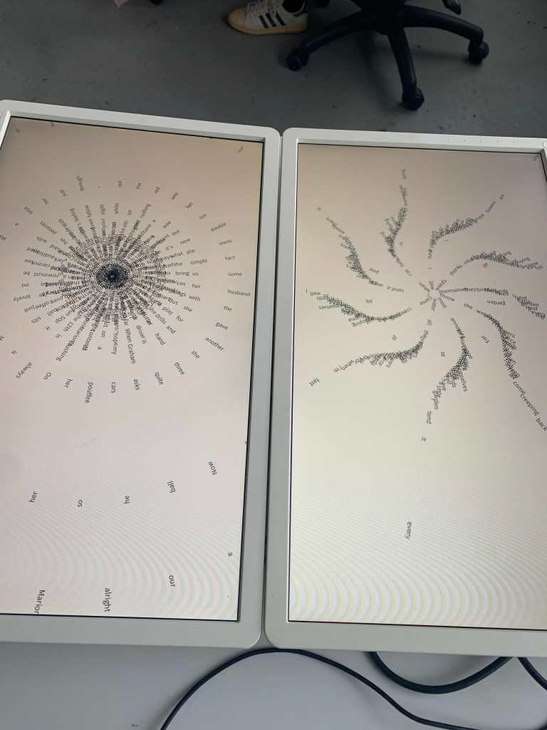 I did quite like the idea of using two screens like a book, its a unique approach for me having two running at once, however as mentioned before there are some technical bumps I need to work out before taking this forward. I also intend on sticking with black and white for my sketches as it again creates the same effect that I was going with when I decided on the monitors in the first place. It is also the most legible to the most amount of people, contrasting the jumbled up look of the sketch.