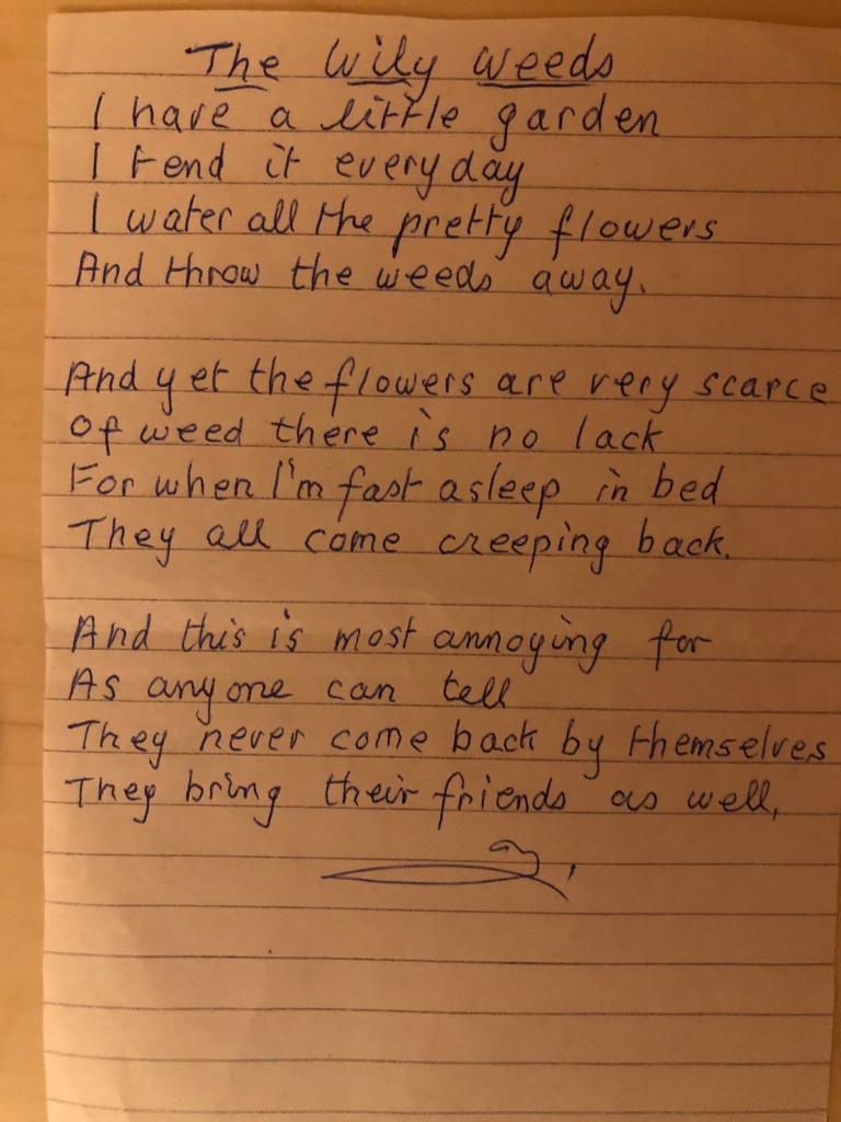 I managed to get a hold of some of the poems my gran wrote, one was a poem as part of a speech from when she was the Captain of the Ladies golf club in Hamilton and the other is about her gardening.