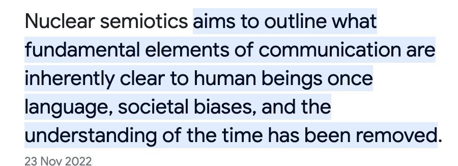Through my time in Interaction Design I have explored many avenues with my work. A prevailing theme I have noticed upon a small part of reflection on my own practice is a way to communicate a sense of unease, curiosity and change / evolution to the viewer. My work on strava anxiety in 3rd year and menacing earthworks in 2nd year I feel display this best. I especially enjoy the field of Nuclear Semiotics as it discusses measures to communicate with cultures thousands of years from now.