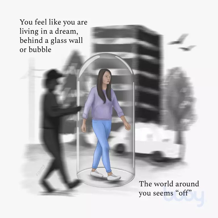 These visuals of a visual migrane is something I felt very strongly about my experience with depersonalisation. Initially not knowing the term for the feeling but I stumbled across this illustration that did it well.