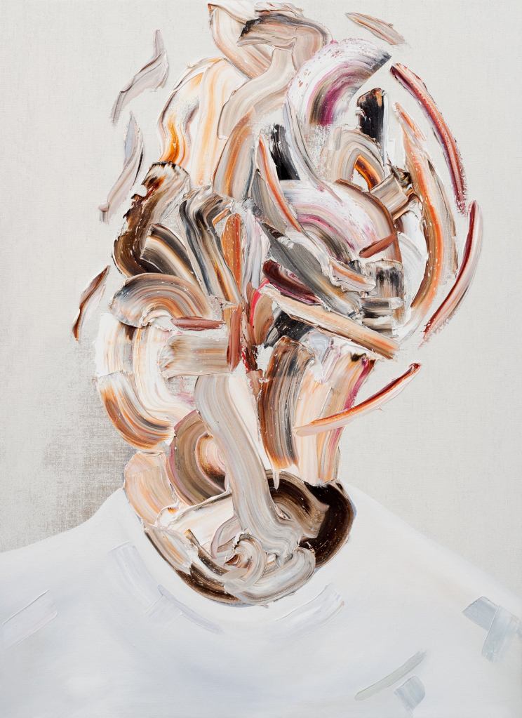 This work was inspired by his move from China to New York and his struggles he found adapting to his new environment. The marks that would usually define ones character and features are the very same that obscure his face.