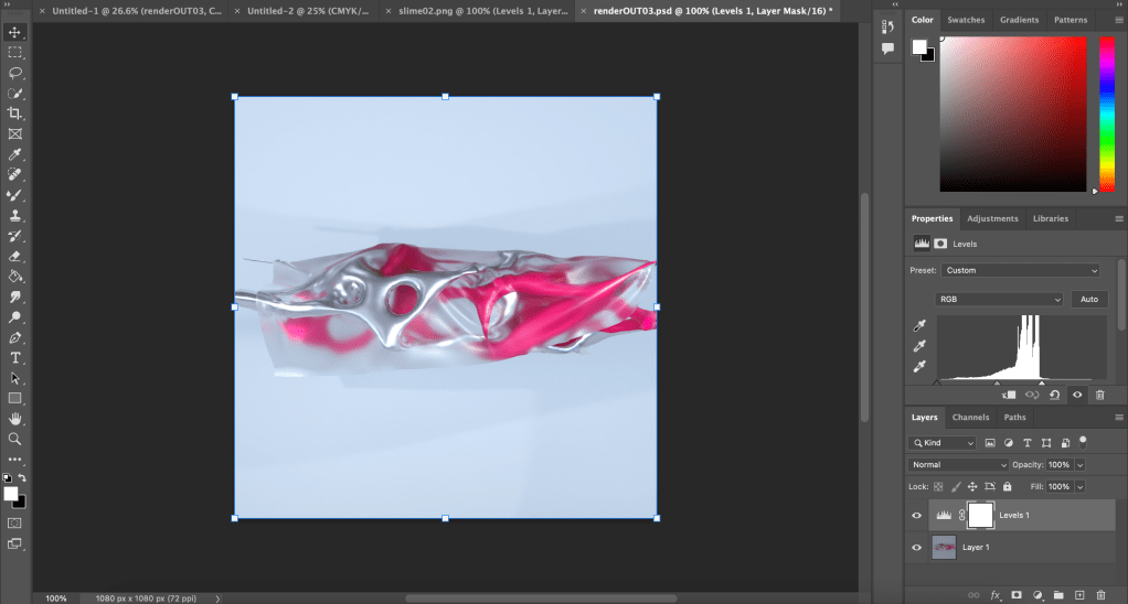 A before and after as the renders were very dull, I used the levels adjustment in photoshop to brighten my render.